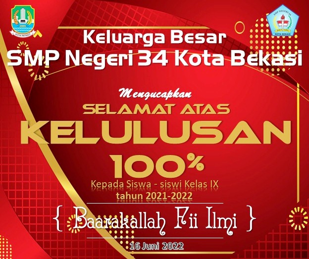 Selamat dan sukses kepada peserta didik SMPN 34 Kota Bekasi Kelas IX Tahun ajaran 2023-2023 telah dinyatakan Lulus 100 %. Bagi yang membutuhkan Surat Keterangan Lulus (SKL) bisa di unduh melalui link berikut :Administrator | 10 Juni 2024 | Dibaca : 776