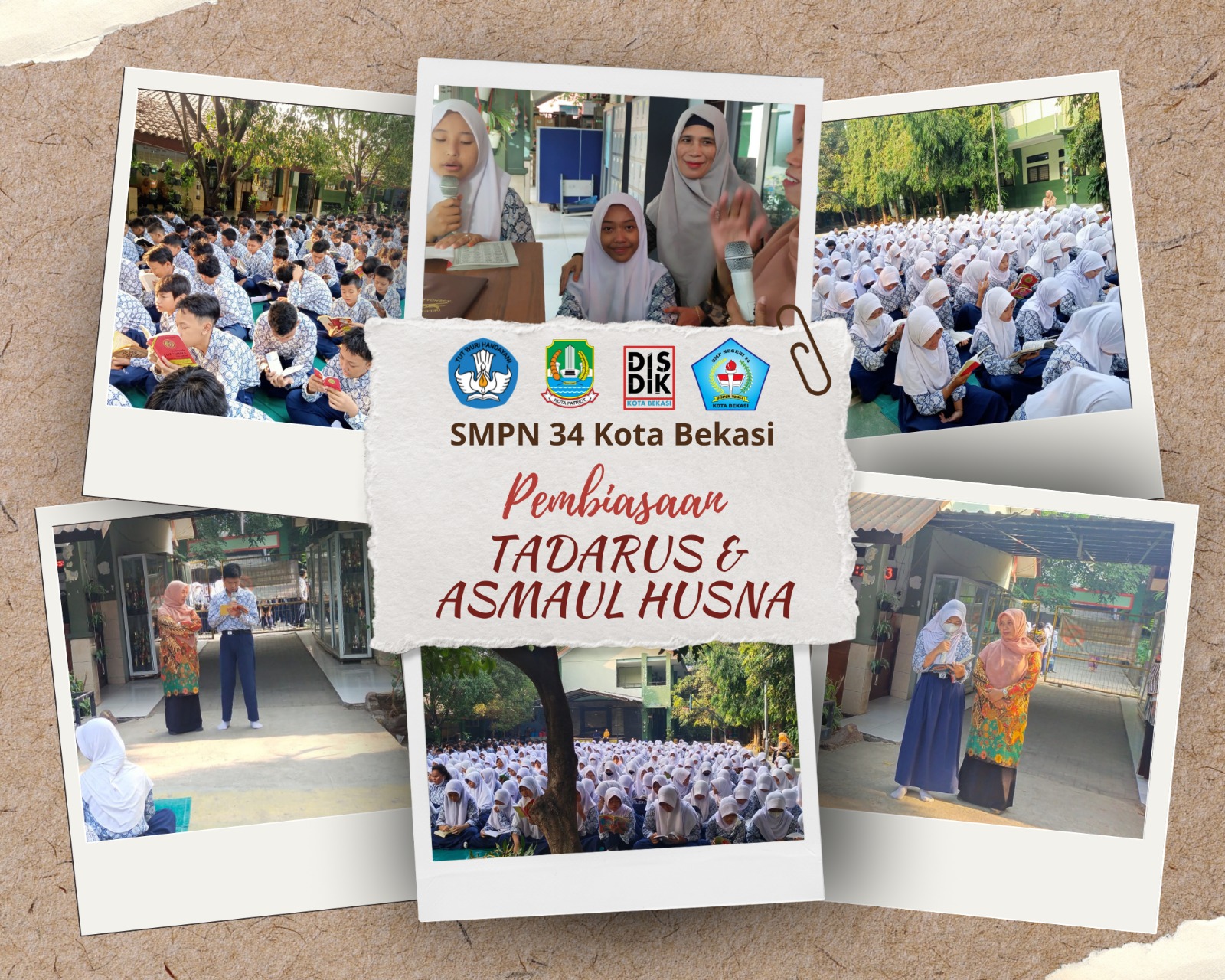 Oleh karena itu SMPN 34 Kota Bekasi menyelenggarakan kegiatan Pembiasaan Tadarus dan Asmaul Husna pagi hari sebelum Kebiatan Belajar Mengajar (KBM) dilaksanakan. Kegiatan tersebut dilaksanakan sebanyak 3 kali dalam seminggu.Pagi jam 6.30 Pembina Kesiswaan Bpk Kuswoyo, S.Pd, M.Pd sudah mengarahkan siswa-siswi untuk menuju Lapangan. Sementara petugas dengan sigap sudah mengelar karpet untuk alas duduk peserta Tadarus. Pagi ini yang mendapat giliran adalah kelas 7 dan 8. Sementara kelas 9 melaksanakan Tadarus di kelas masing-masing. Mengingat keterbatasan tempat untuk seluruh siswa berkumpul secara bersamaan.